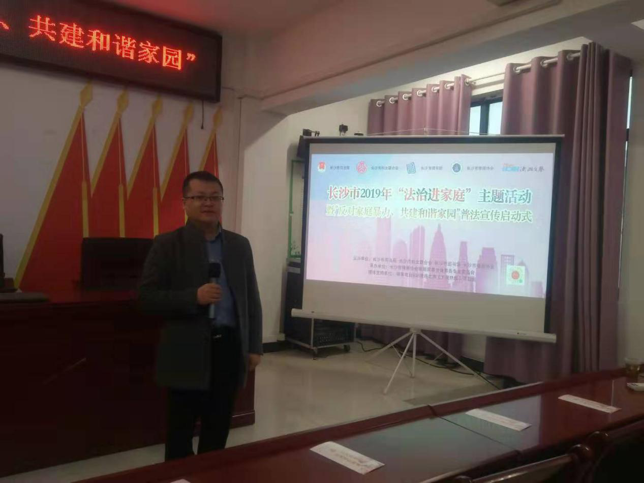 2019年11月25日,由长沙市妇联、长沙市司法局、长沙市律师协会、长沙市图书馆主办,长沙市律协婚姻家事专业委员会承办,岳麓区望城坡街道商贸城社区协办,湖南湘旭律师事务所周龙律师主讲的“法治进家庭”主题活动之“反对家庭暴力,共建和谐家园”普法宣讲活动在商贸城社区隆重举行。本次活动的目的是通过法律讲堂的讲解、宣传,让商贸城社区居民能够加深对《反家暴法》的认识,唤起全社会对于家暴事件的重视。